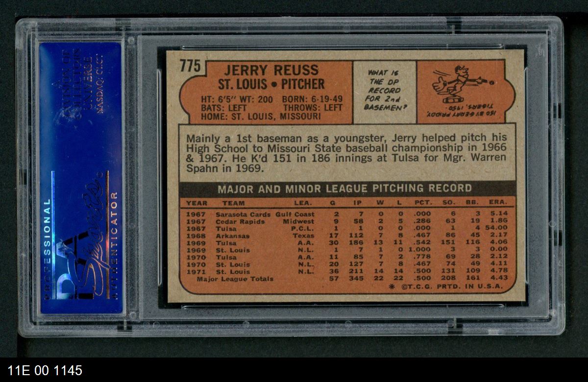 | 1972 Topps #775 Jerry Reuss | PSA 8 - NM/MT | Front | Back |