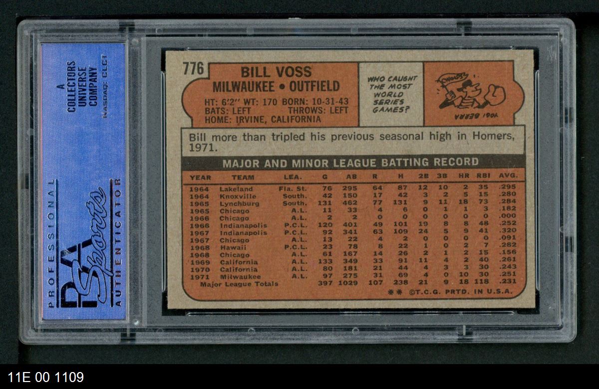 | 1972 Topps #776 Bill Voss | PSA 8 - NM/MT | Front | Back |