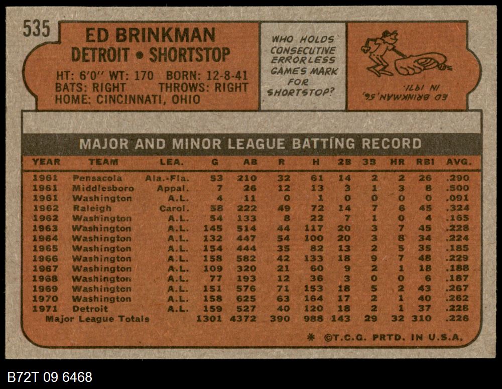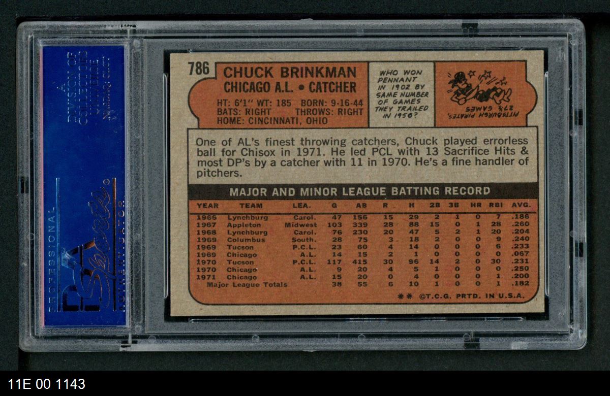 | 1972 Topps #786 Chuck Brinkman | PSA 8 - NM/MT | Front | Back |