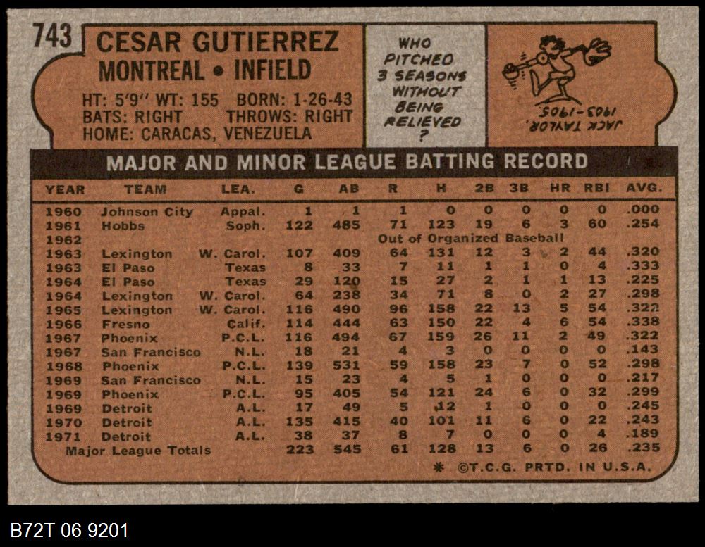 | 1972 Topps #743 Cesar Gutierrez | 7.5 - NM+ | Front | Back |