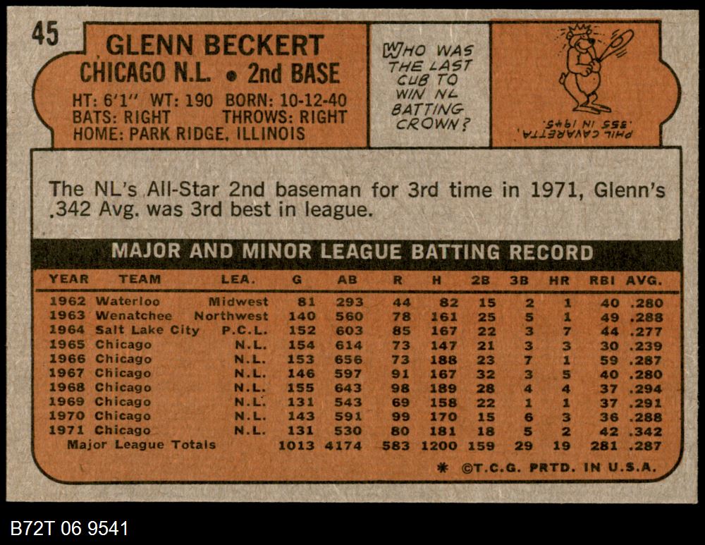 | 1972 Topps #45 YLW Glenn Beckert | 7 - NM | Front | Back |