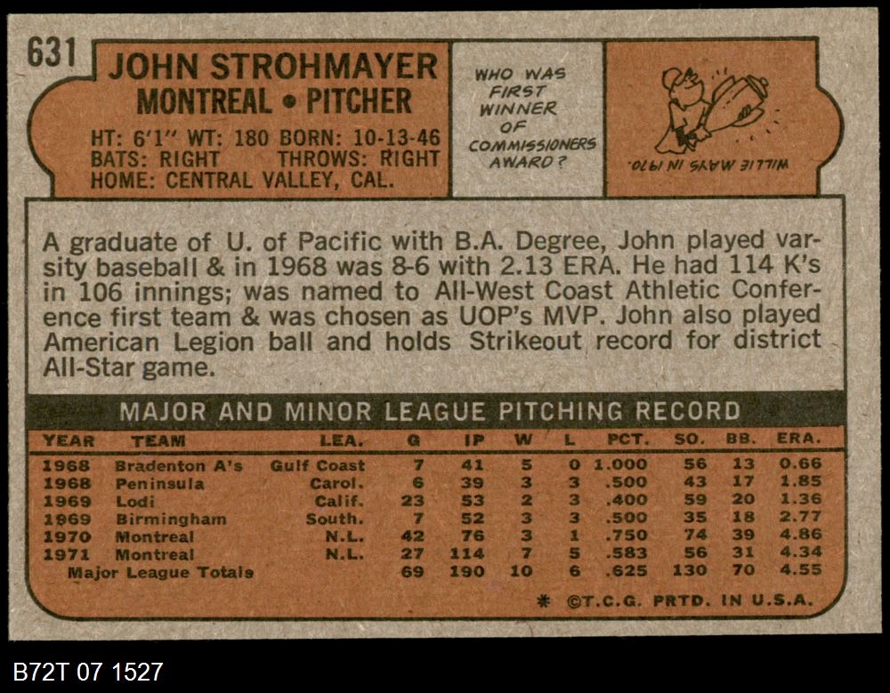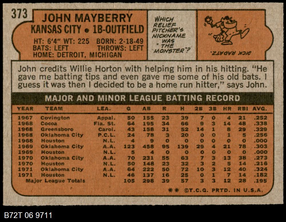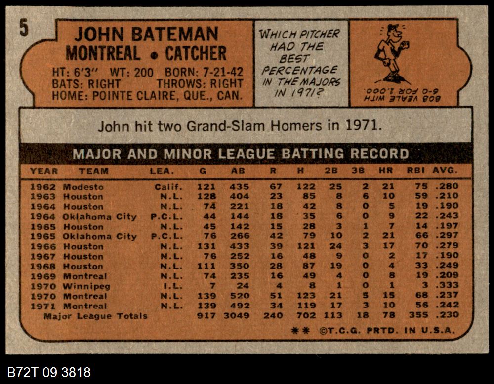 | 1972 Topps #5 John Bateman | 7 - NM | Front | Back |