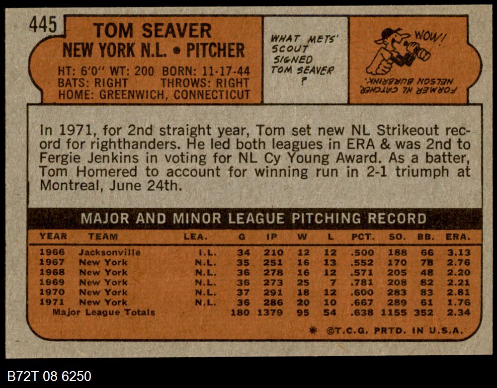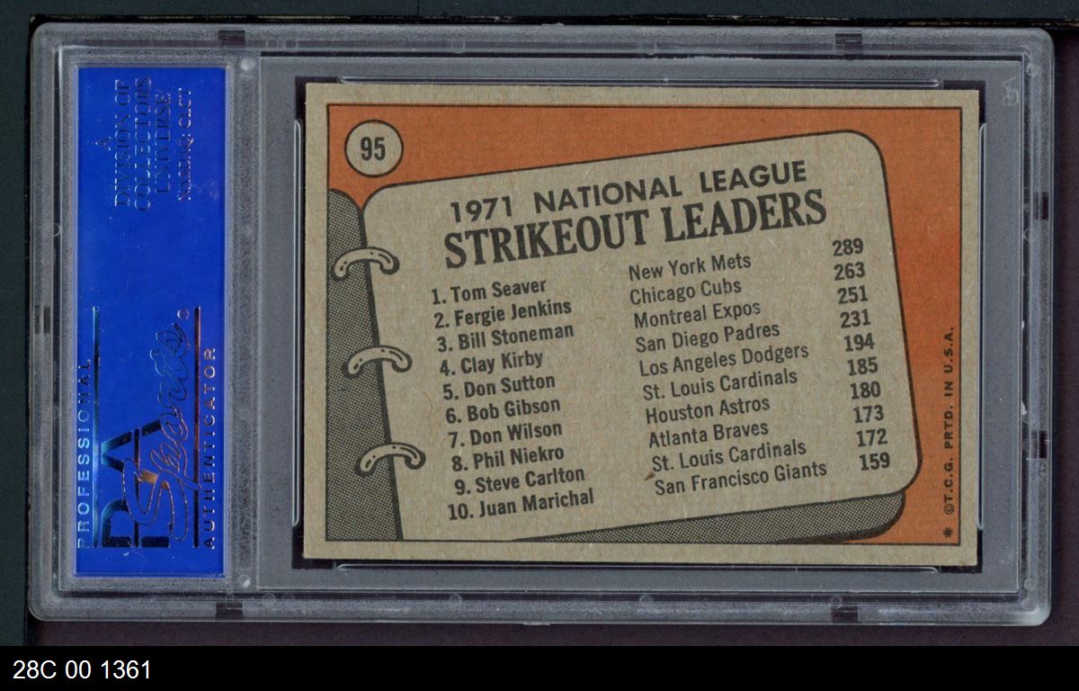 | 1972 Topps #95 - Fergie Jenkins / Tom Seaver / Bil Stoneman NL Strikeout Leaders | PSA 8 - NM/MT | Front | Back |