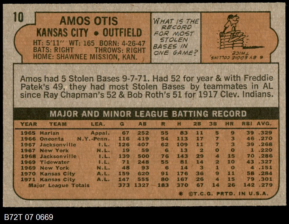 | 1972 Topps #10 Amos Otis | 7.5 - NM+ | Front | Back |