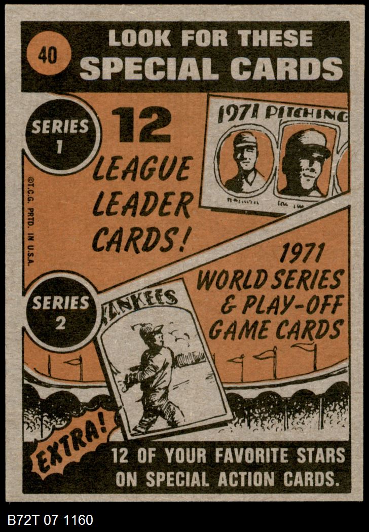| 1972 Topps #40 - Bob Barton In Action | 5 - EX | Front | Back |