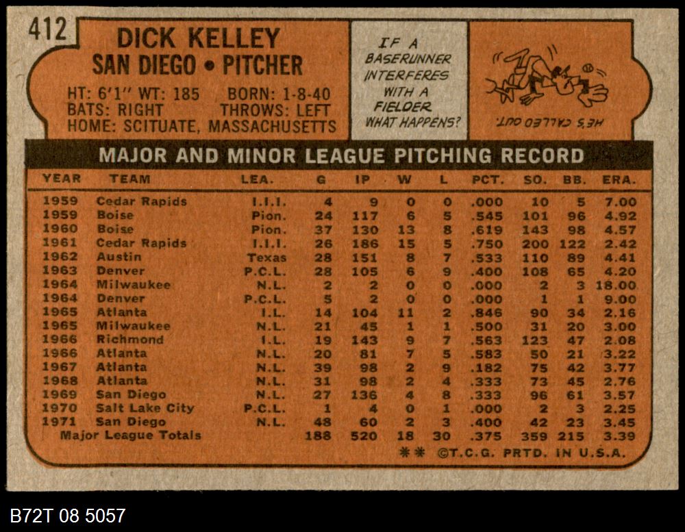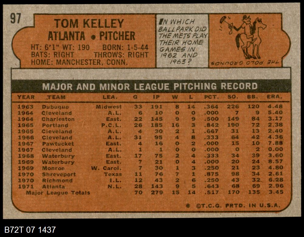 | 1972 Topps #97 Tom Kelley | 8 - NM/MT | Front | Back |