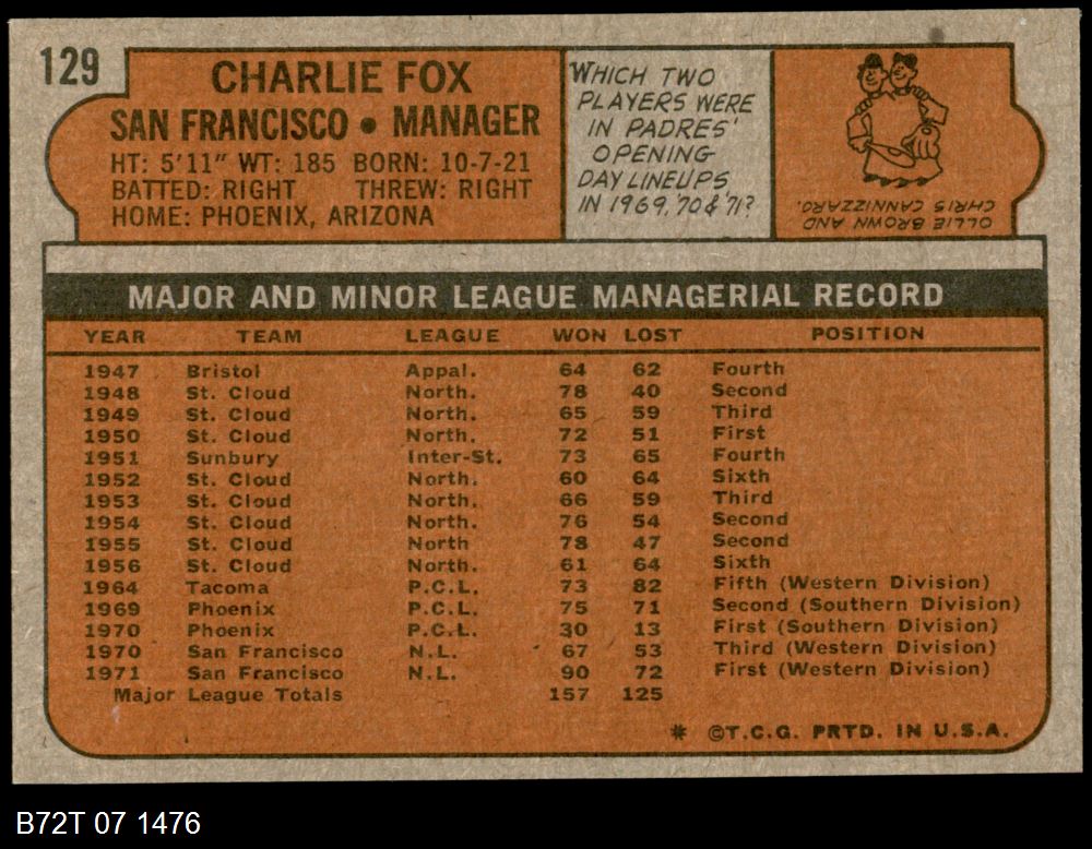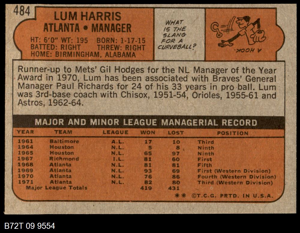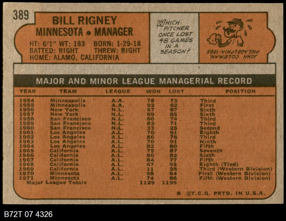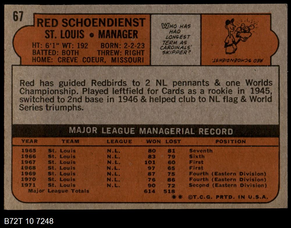 | 1972 Topps #67 Red Schoendienst | 6 - EX/MT | Front | Back |
