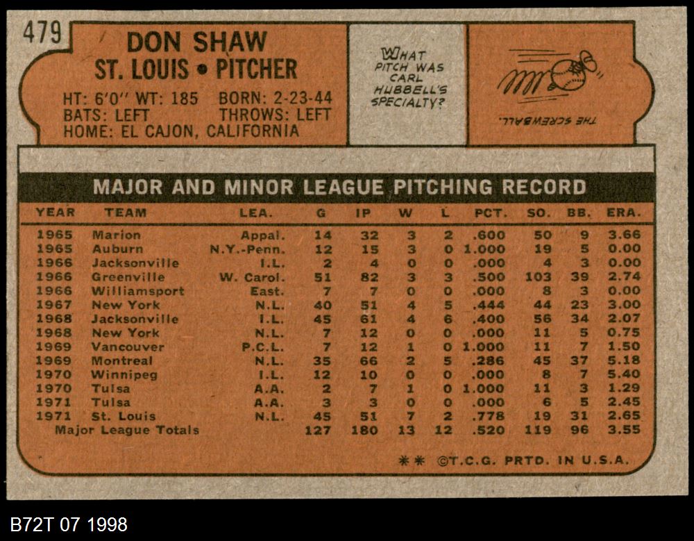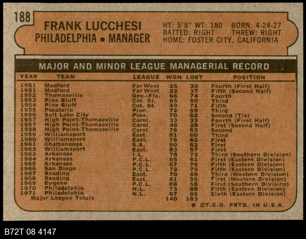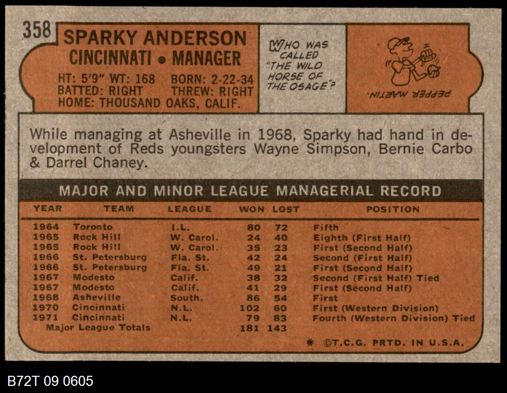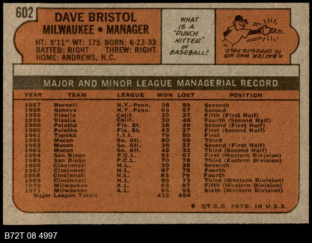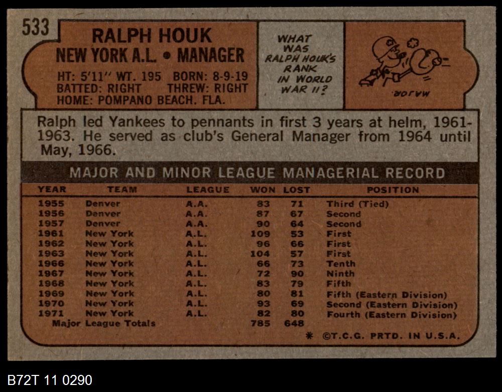 | 1972 Topps #67 Red Schoendienst | 6 - EX/MT | Front | Back |