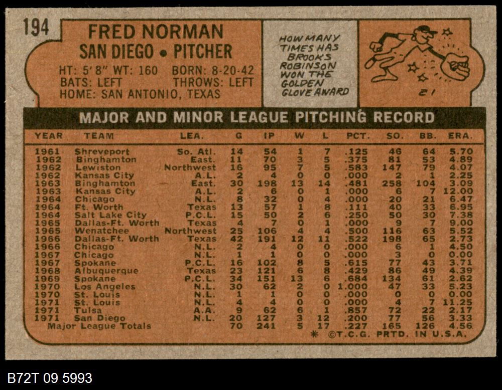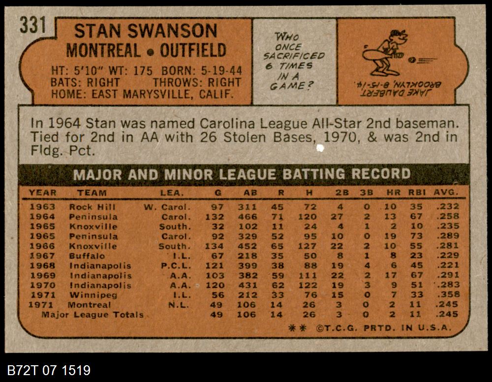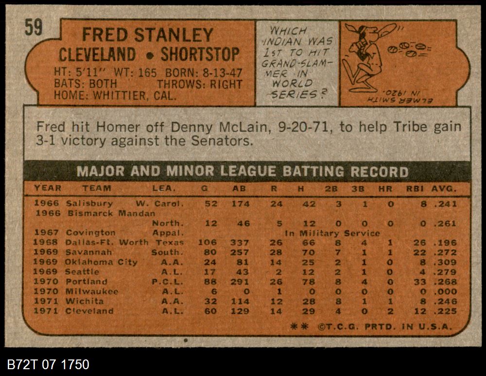 | 1972 Topps #59 Fred Stanley | 7 - NM | Front | Back |