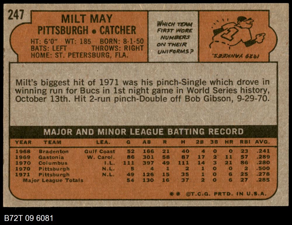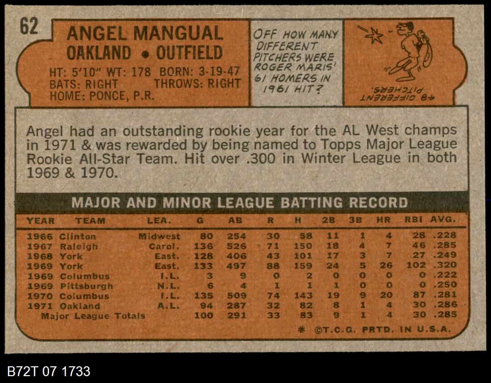 | 1972 Topps #62 Angel Mangual | 8 - NM/MT | Front | Back |