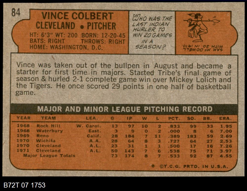 | 1972 Topps #84 Vince Colbert | 8 - NM/MT | Front | Back |
