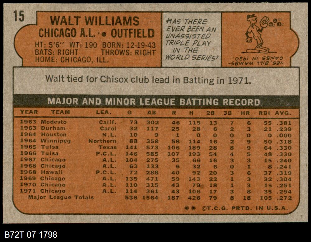 | 1972 Topps #15 Walt Williams | 8 - NM/MT | Front | Back |