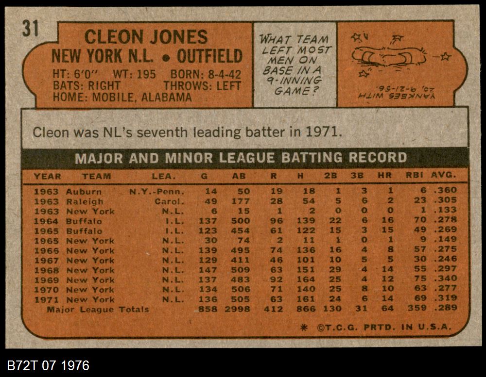 | 1972 Topps #31 Cleon Jones | 8 - NM/MT | Front | Back |