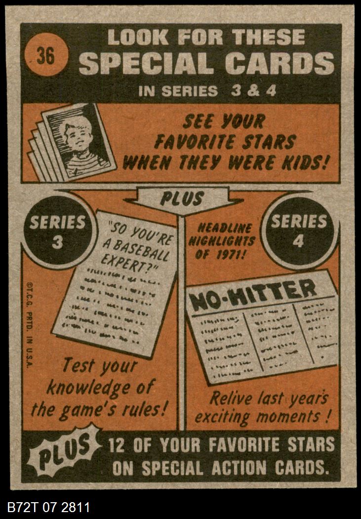 | 1972 Topps #36 - Jerry Johnson In Action | 7 - NM | Front | Back |