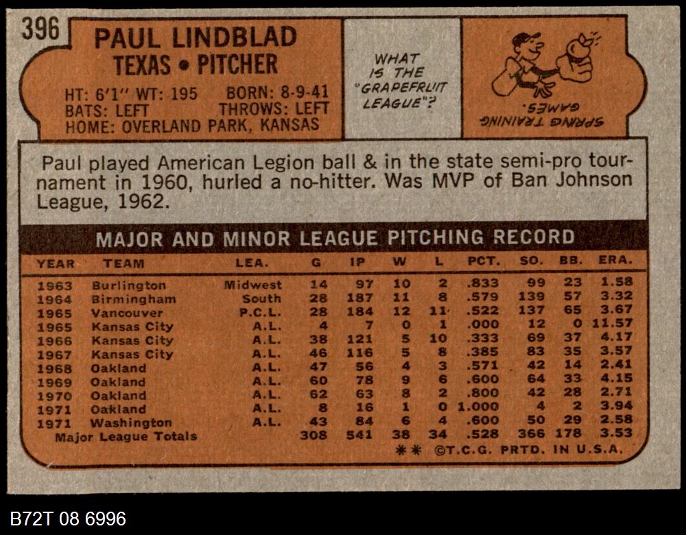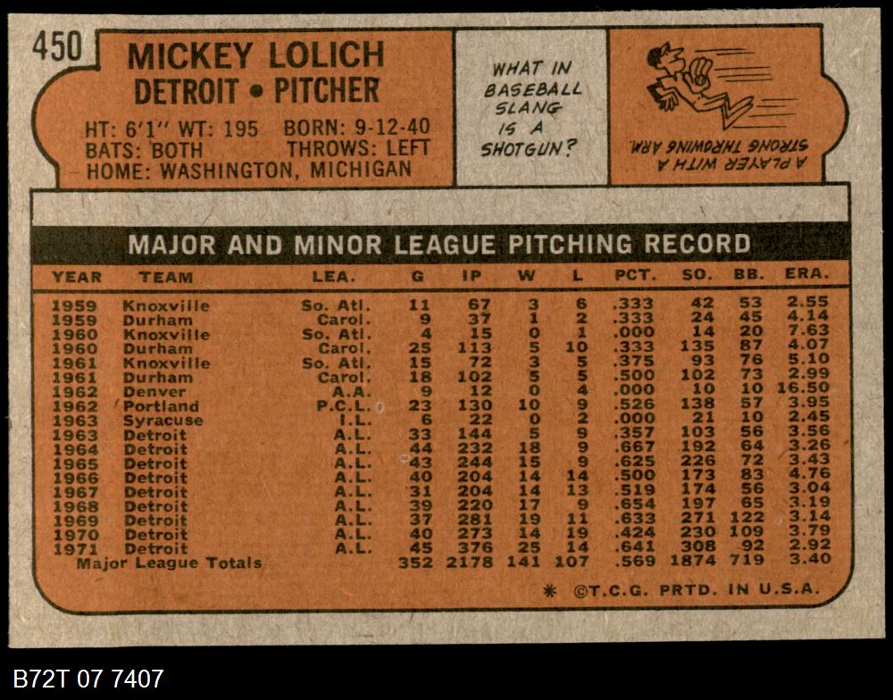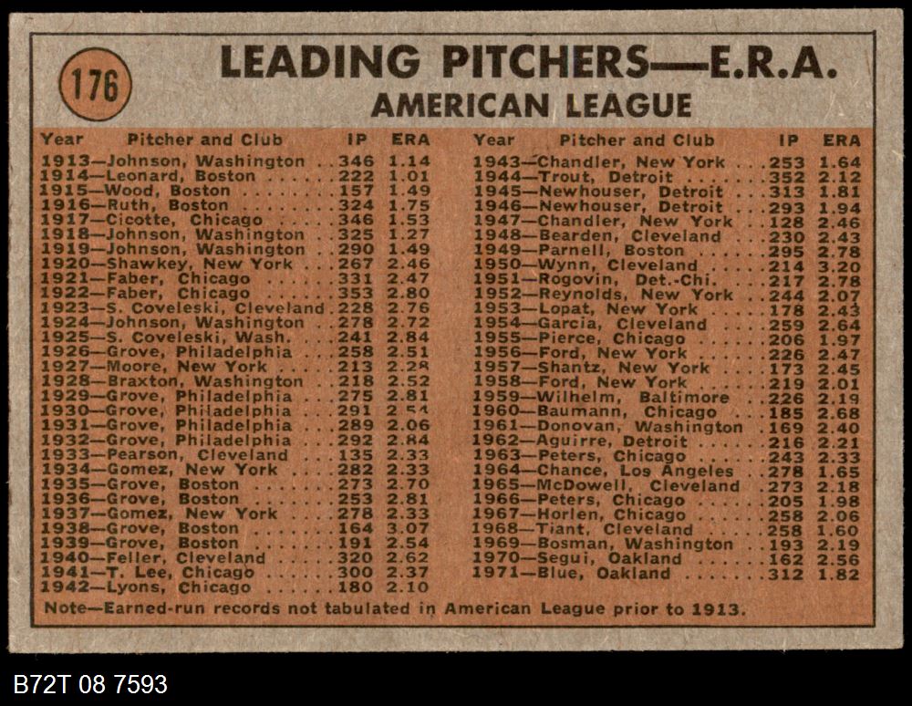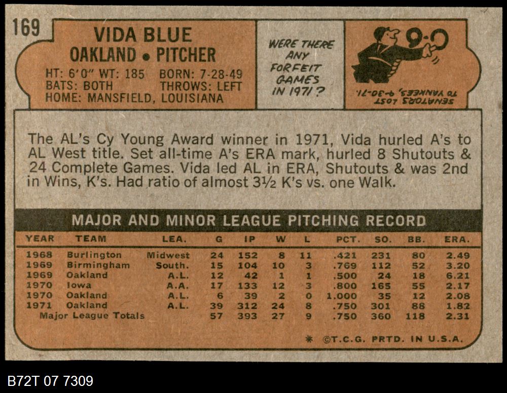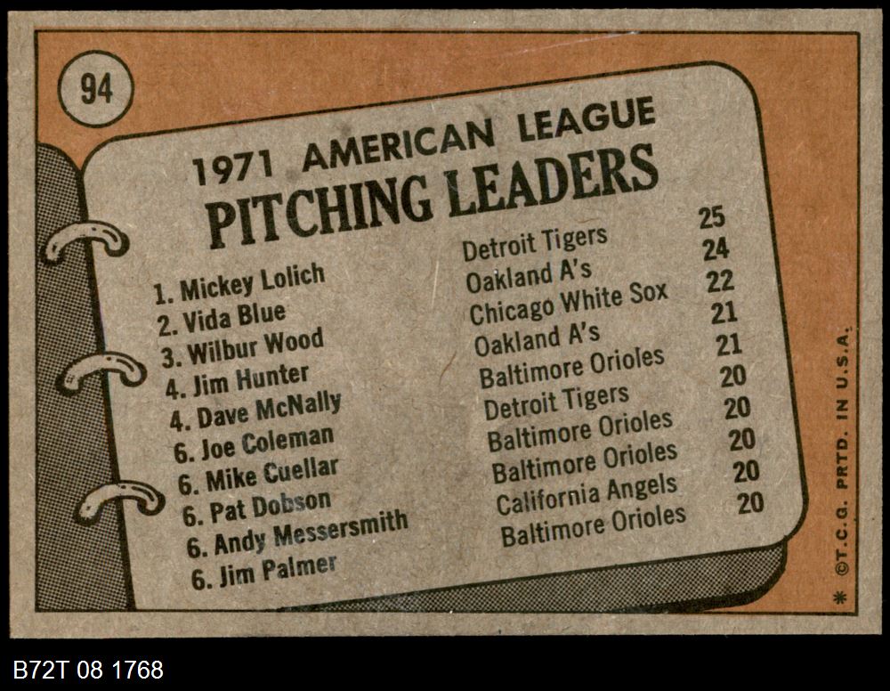 | 1972 Topps #94 - Vida Blue / Mickey Lolich / Wilbur Wood AL Pitching Leaders | 6.5 - EX/MT+ | Front | Back |
