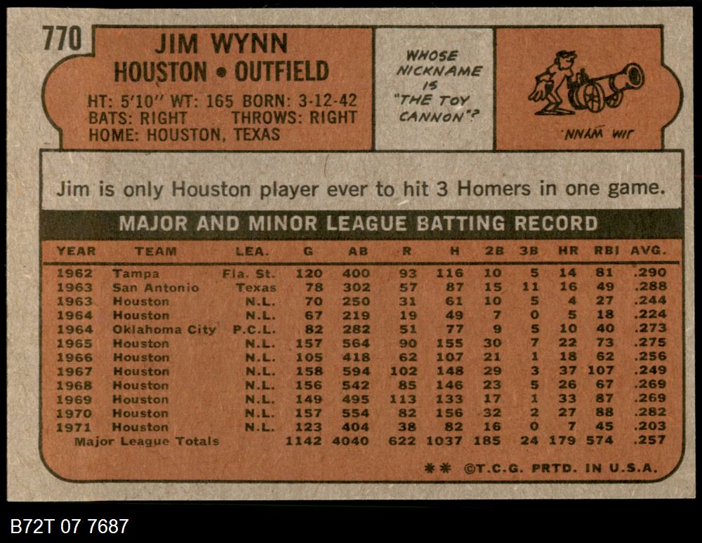 | 1972 Topps #770 Jim Wynn | 8 - NM/MT | Front | Back |