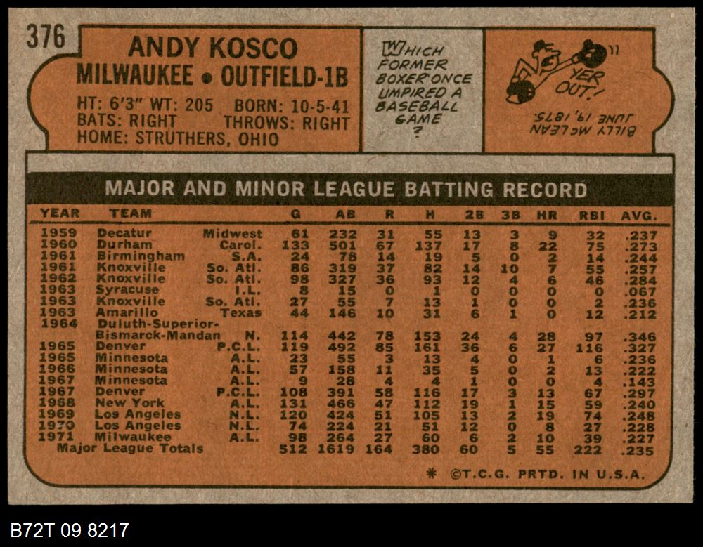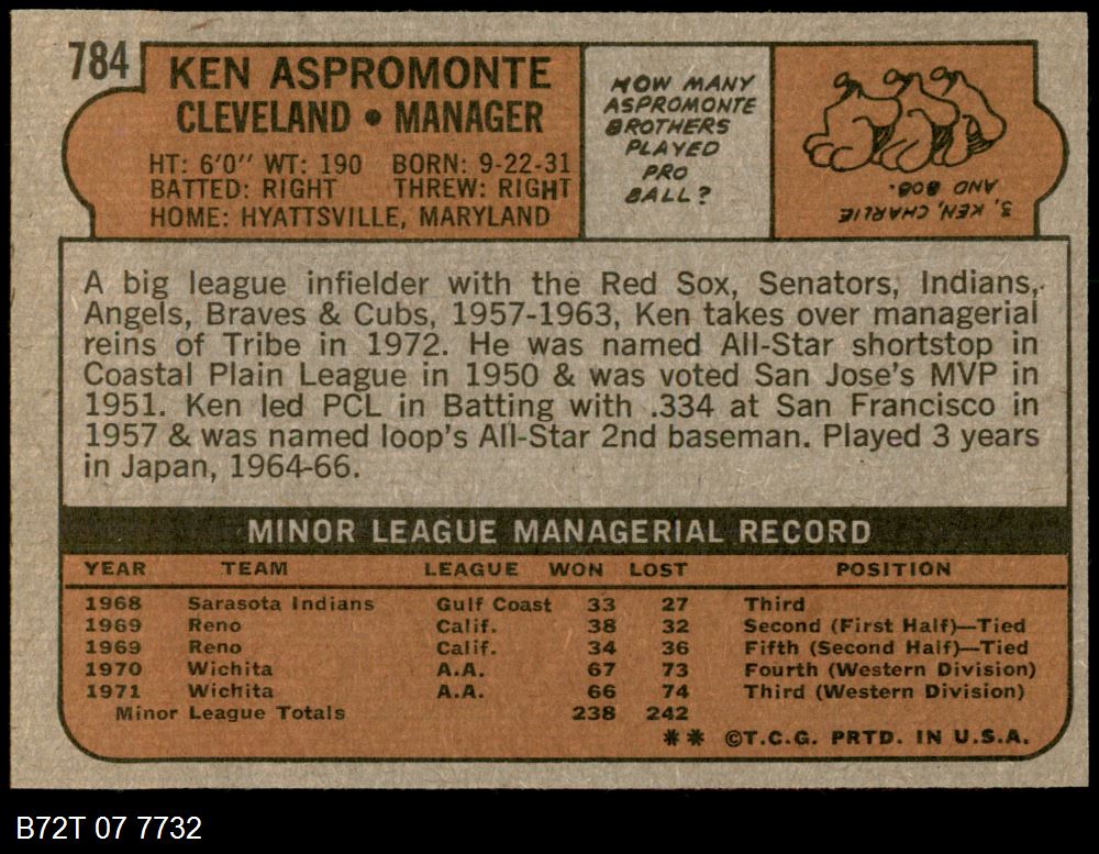 | 1972 Topps #784 Ken Aspromonte | 8 - NM/MT | Front | Back |