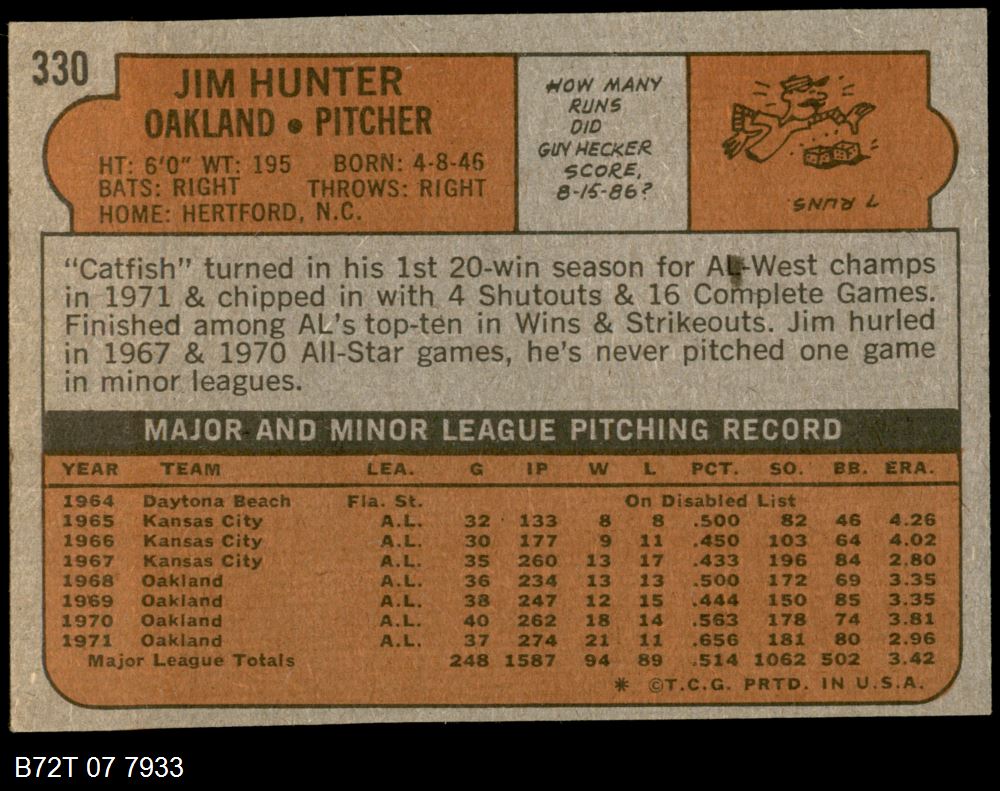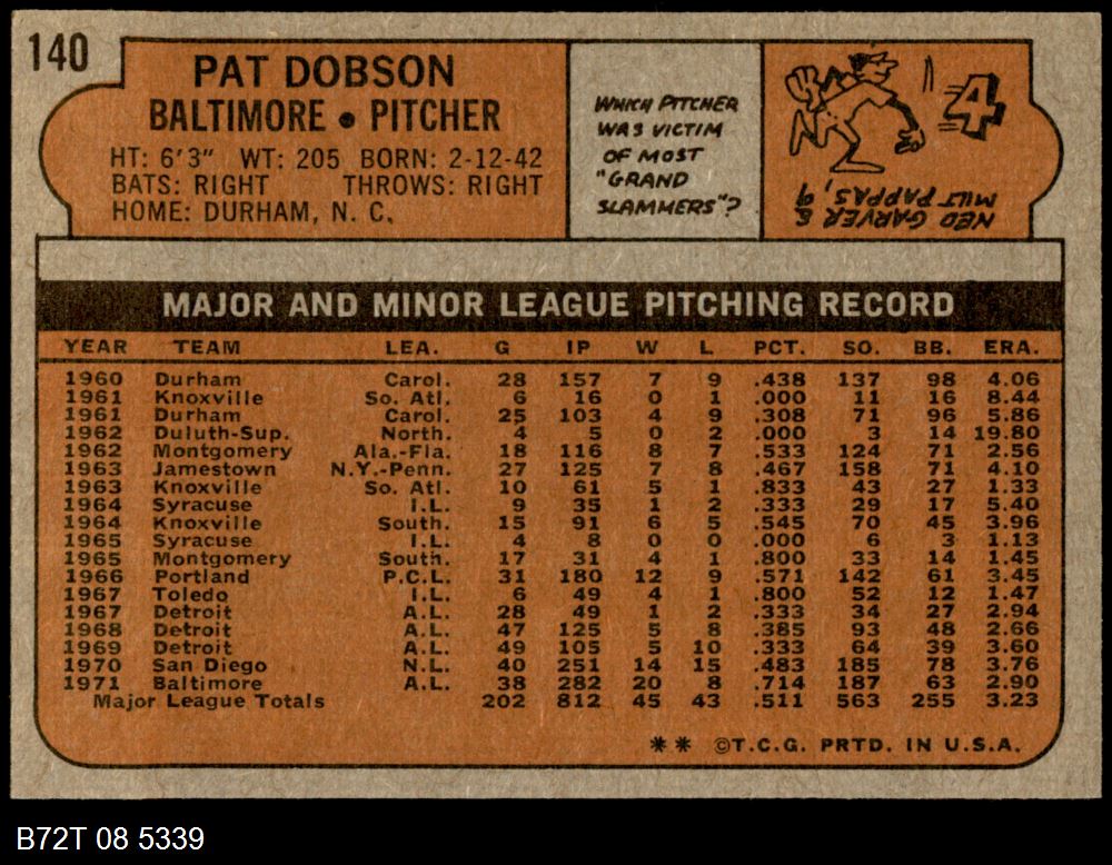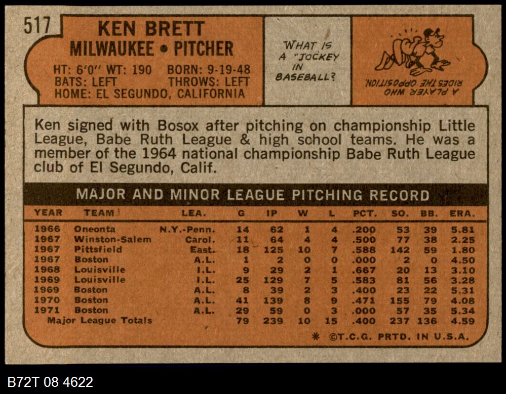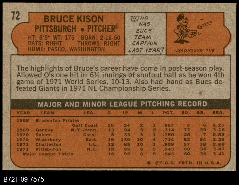 | 1972 Topps #72 Bruce Kison | 7 - NM | Front | Back |