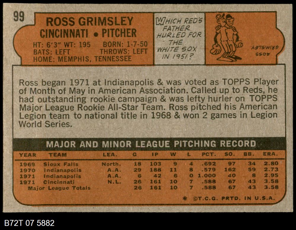 | 1972 Topps #99 Ross Grimsley | 7 - NM | Front | Back |