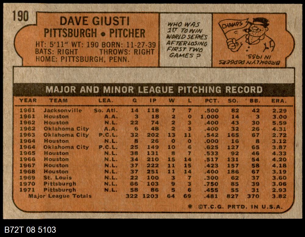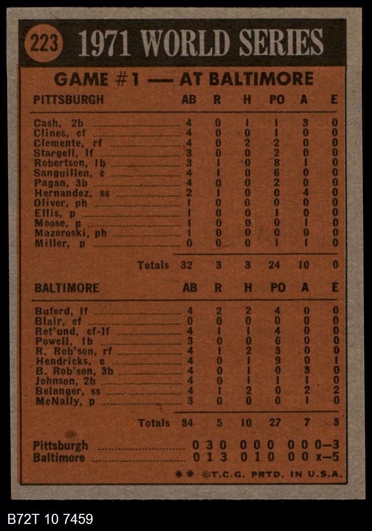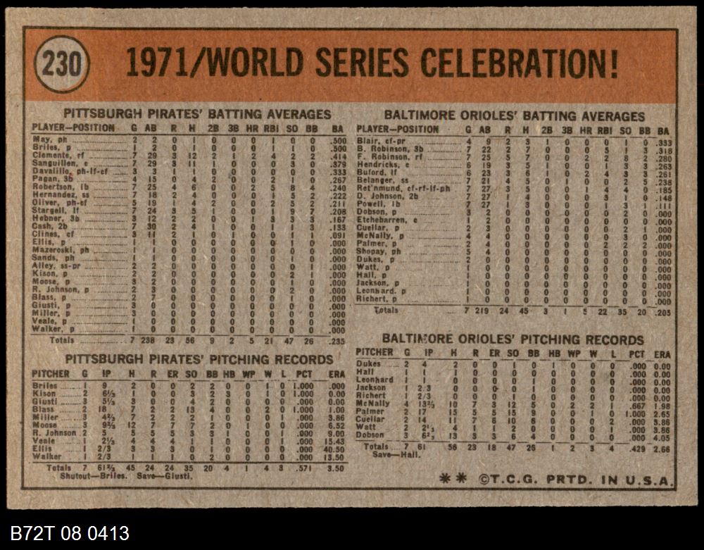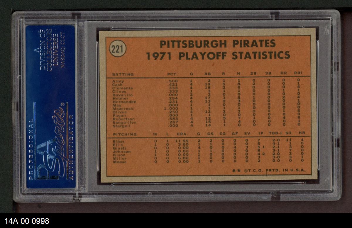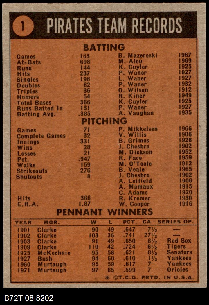 | 1972 Topps #1 - World Champions Pirates Team | 6 - EX/MT | Front | Back |