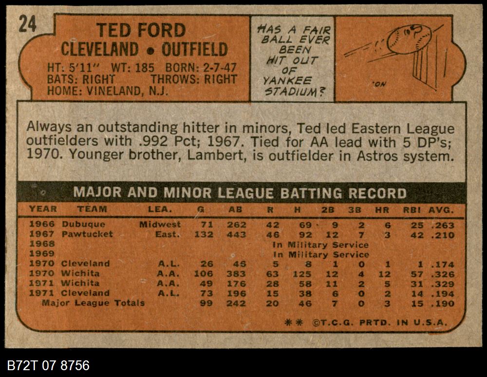 | 1972 Topps #24 Ted Ford | 7 - NM | Front | Back |