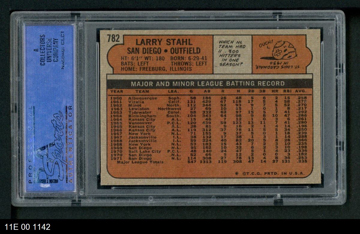 | 1972 Topps #782 Larry Stahl | PSA 8 - NM/MT | Front | Back |
