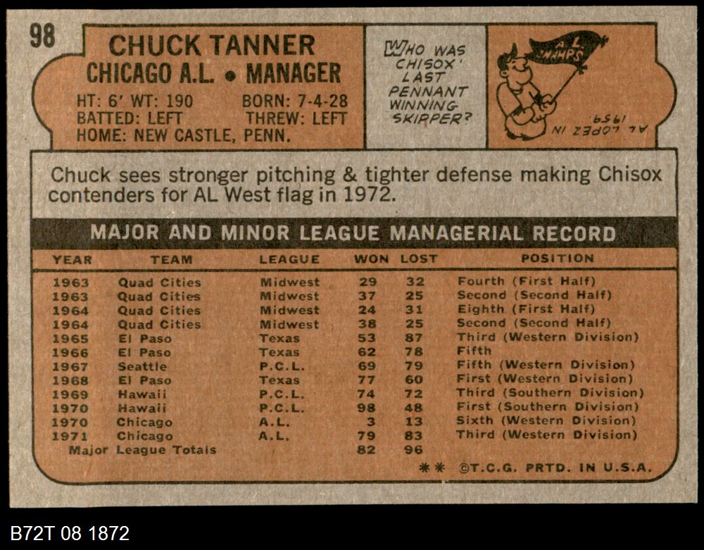 | 1972 Topps #98 Chuck Tanner | 7 - NM | Front | Back |
