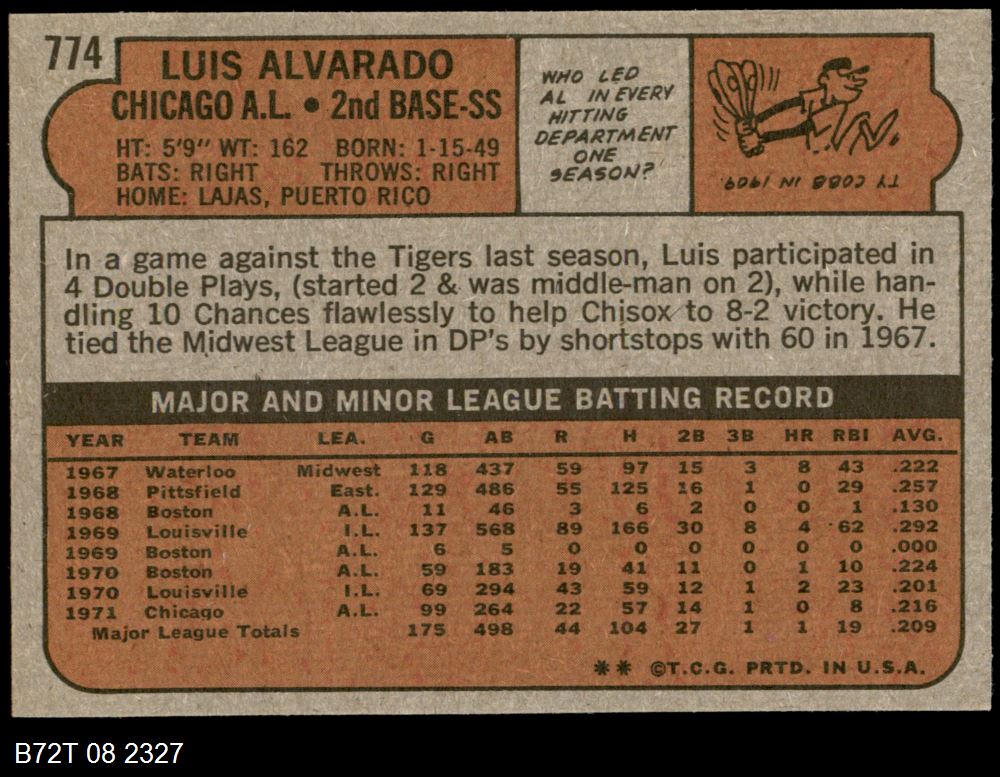 | 1972 Topps #774 Luis Alvarado | 8 - NM/MT | Front | Back |