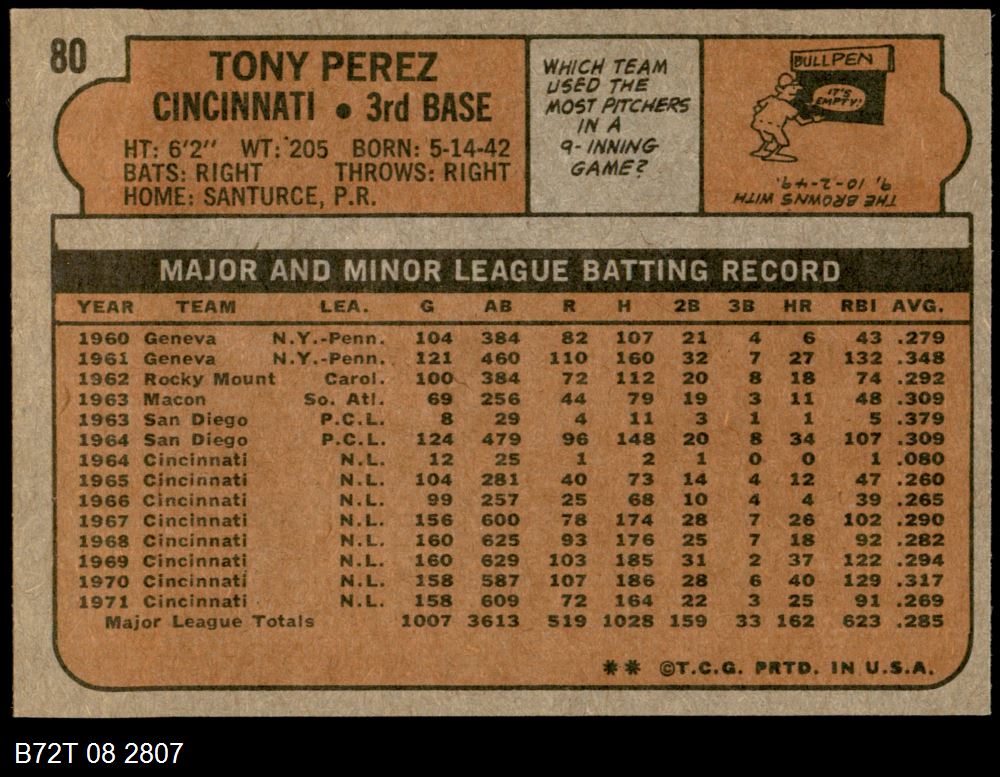 | 1972 Topps #80 Tony Perez | 7 - NM | Front | Back |