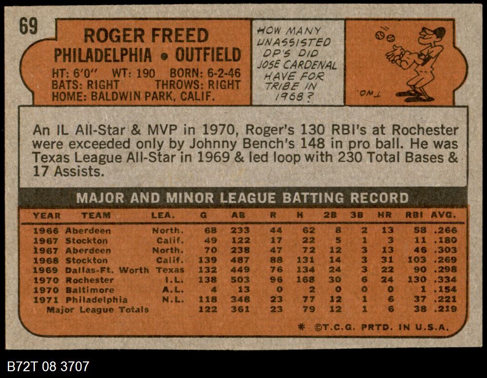 | 1972 Topps #69 Roger Freed | 7 - NM | Front | Back |