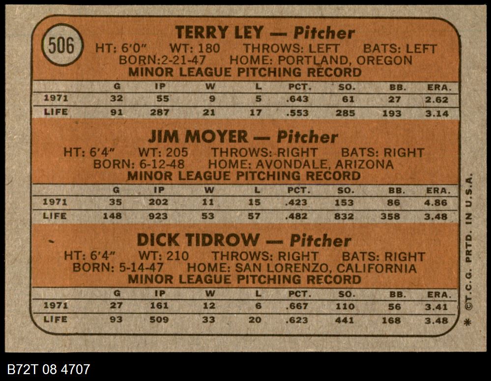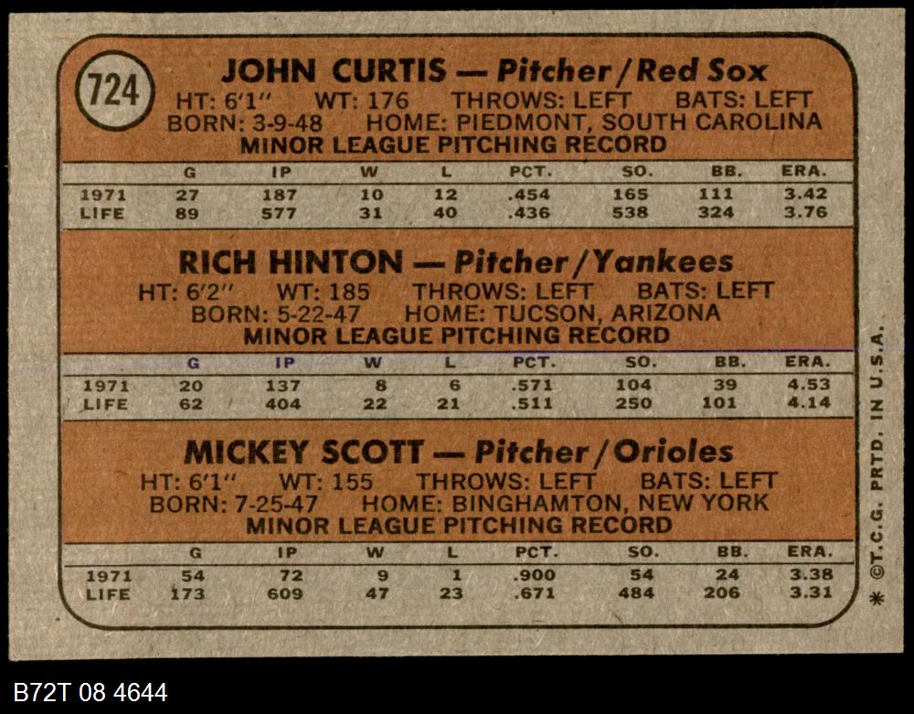 | 1972 Topps #724 - John Curtis / Rich Hinton / Mickey Scott AL Rookies - Pitchers | 7 - NM | Front | Back |