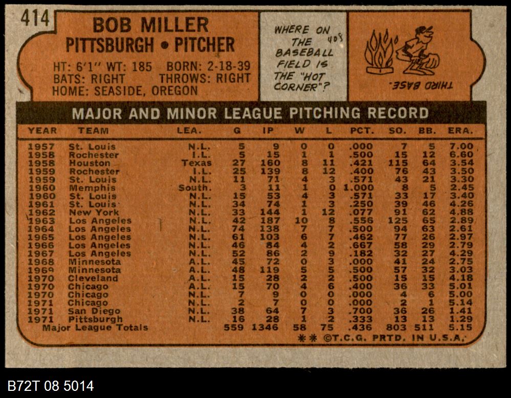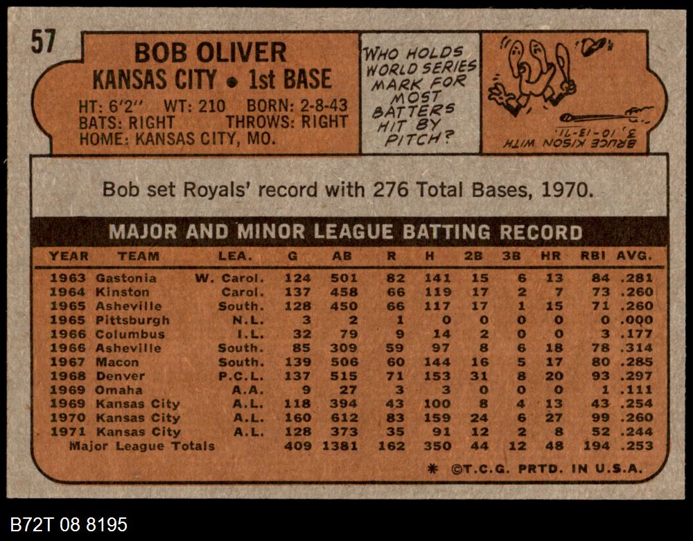 | 1972 Topps #57 Bob Oliver | 8 - NM/MT | Front | Back |