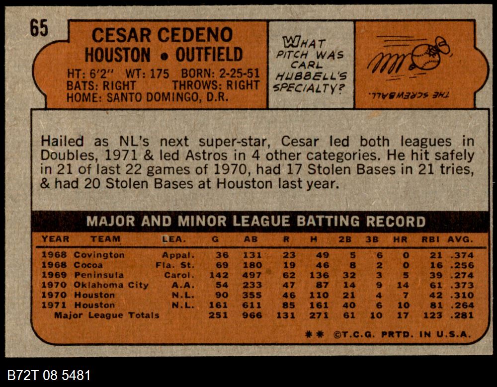 | 1972 Topps #65 Cesar Cedeno | 7 - NM | Front | Back |