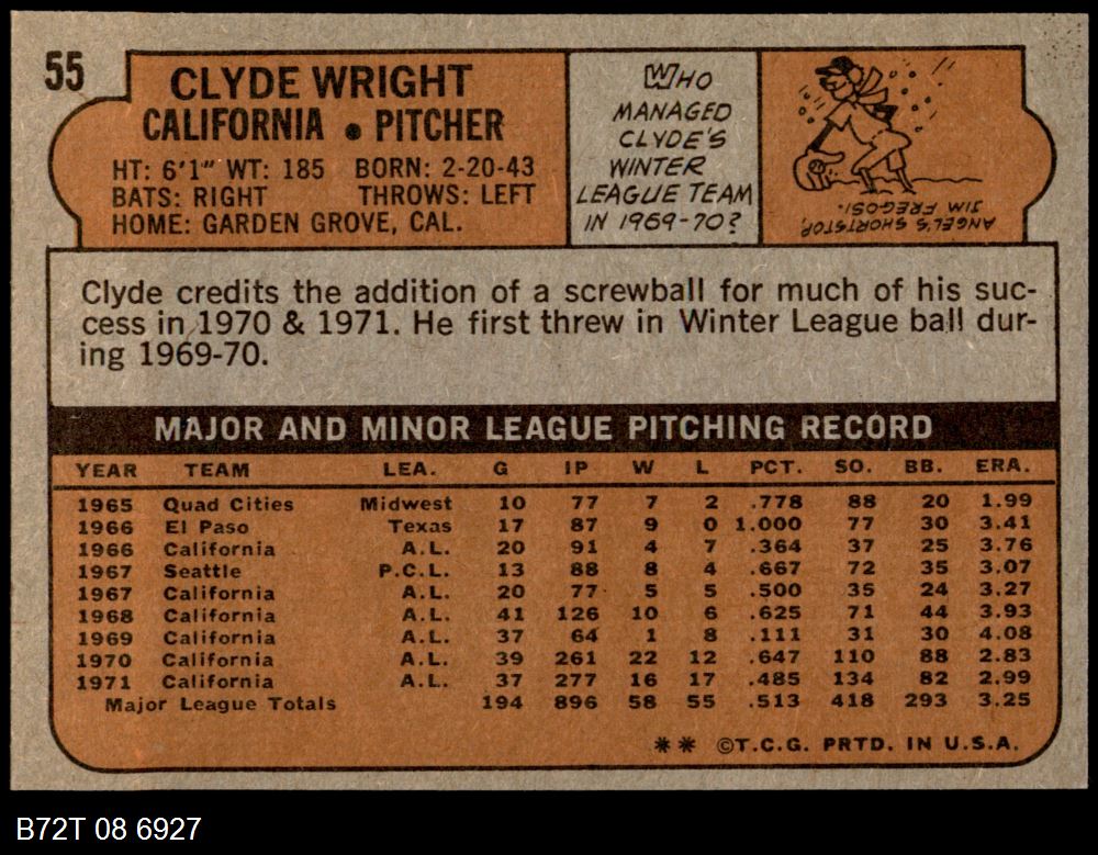 | 1972 Topps #55 Clyde Wright | 7 - NM | Front | Back |
