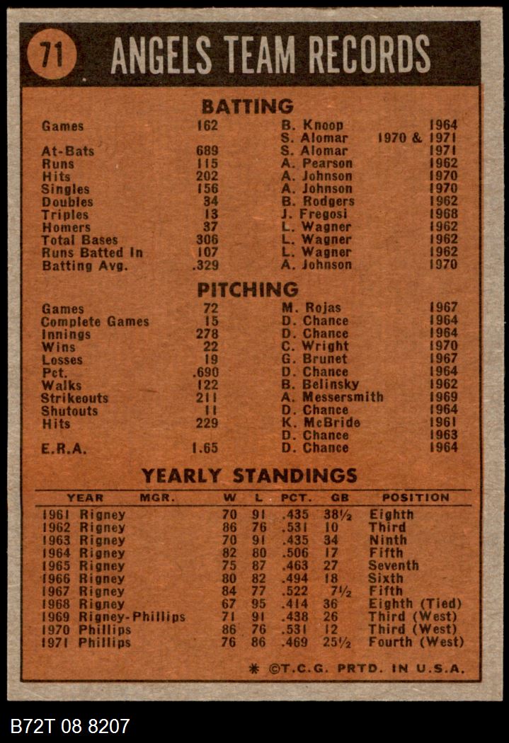 | 1972 Topps #71 Angels Team | 7.5 - NM+ | Front | Back |