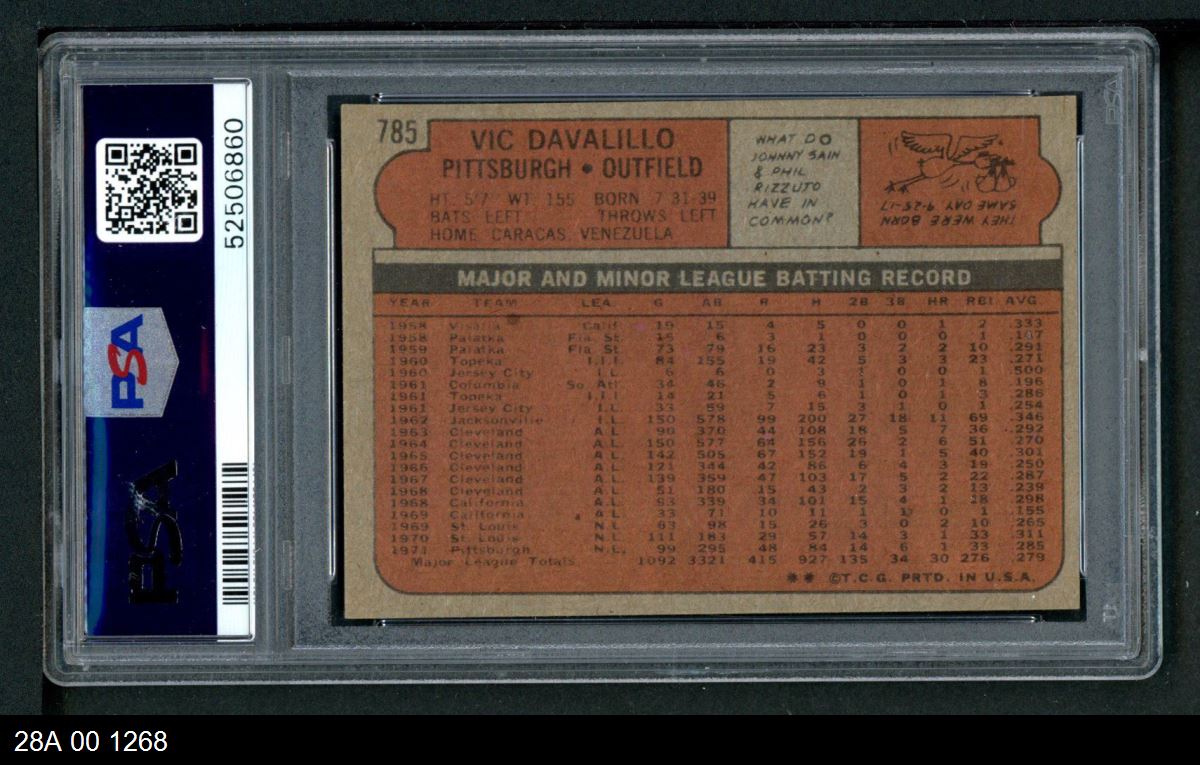 | 1972 Topps #785 Vic Davalillo | PSA 8 - NM/MT | Front | Back |
