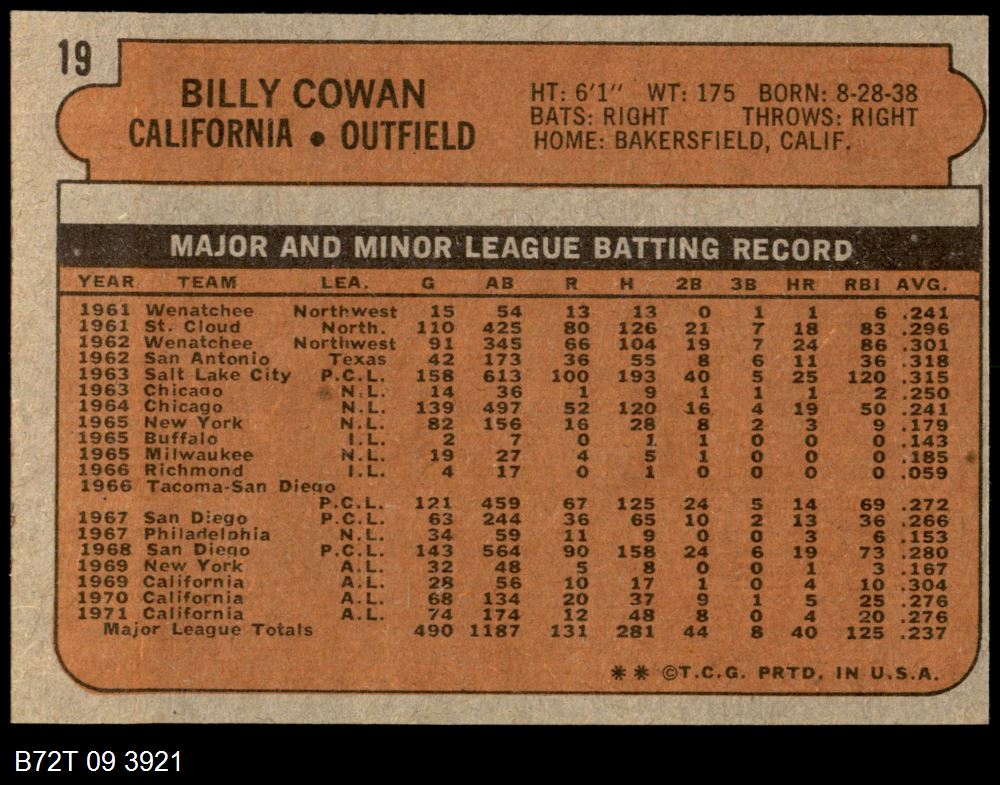 | 1972 Topps #19 Billy Cowan | 7 - NM | Front | Back |