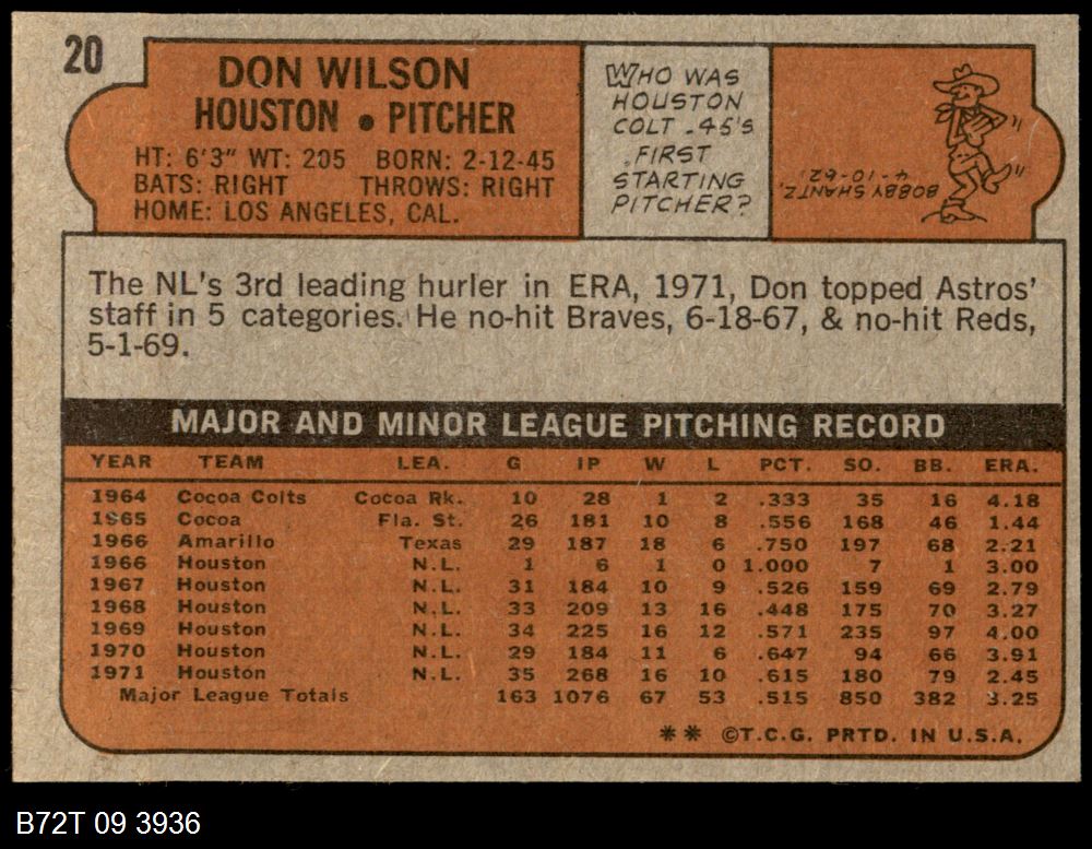 | 1972 Topps #20 Don Wilson | 7 - NM | Front | Back |