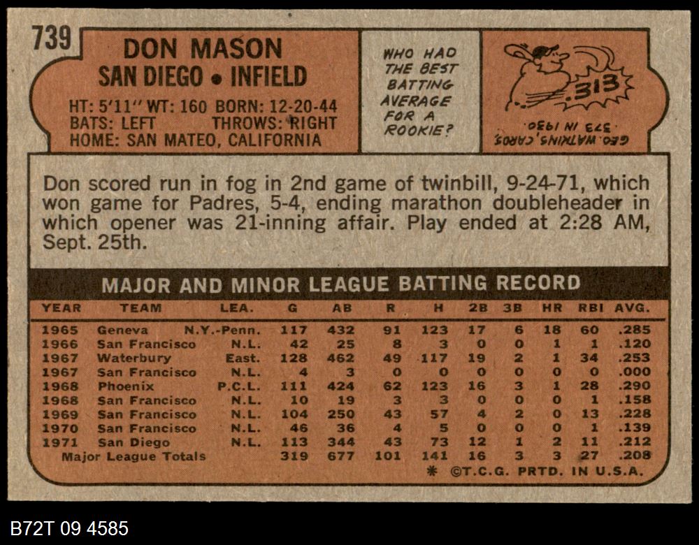 | 1972 Topps #739 Don Mason | 7.5 - NM+ | Front | Back |