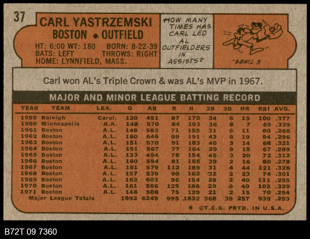| 1972 Topps #37 Carl Yastrzemski | 7.5 - NM+ | Front | Back |