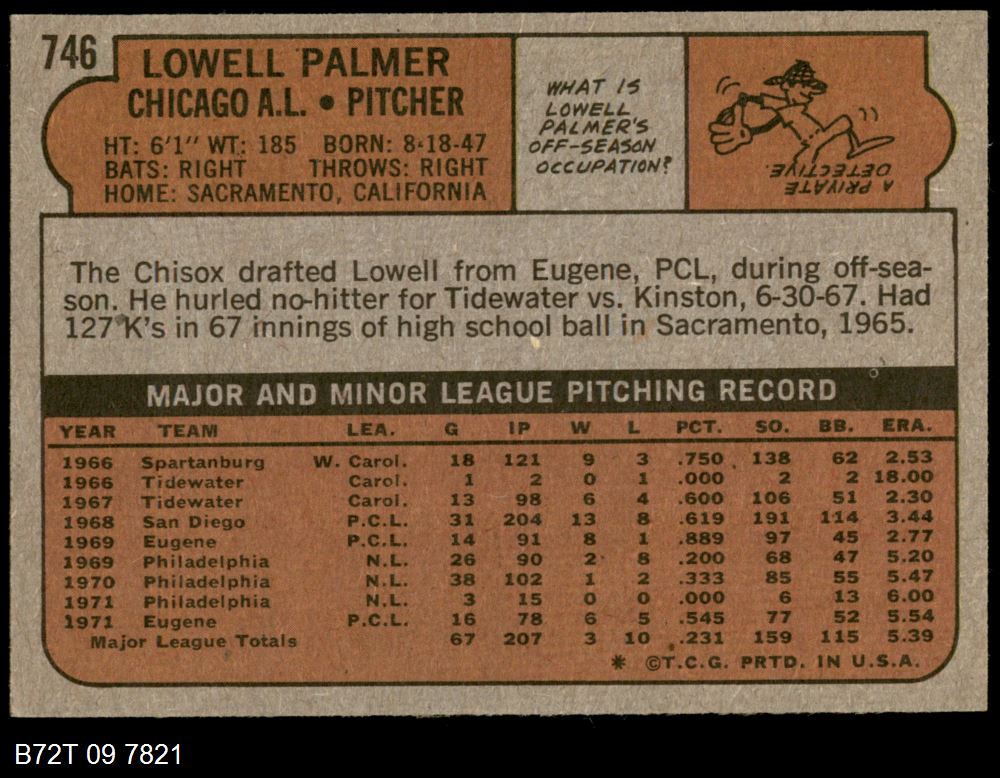 | 1972 Topps #746 Lowell Palmer | 7.5 - NM+ | Front | Back |