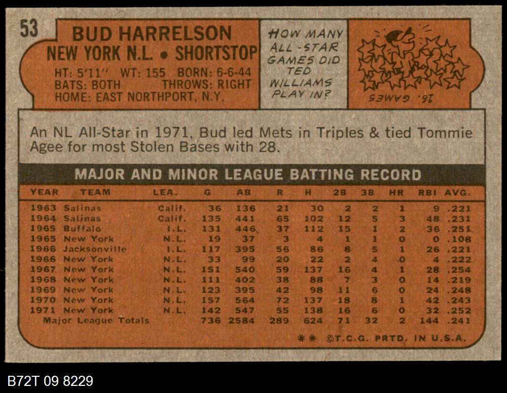 | 1972 Topps #53 Bud Harrelson | 8 - NM/MT | Front | Back |