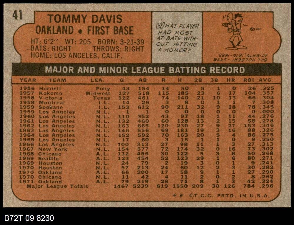 | 1972 Topps #41 Tommy Davis | 8 - NM/MT | Front | Back |