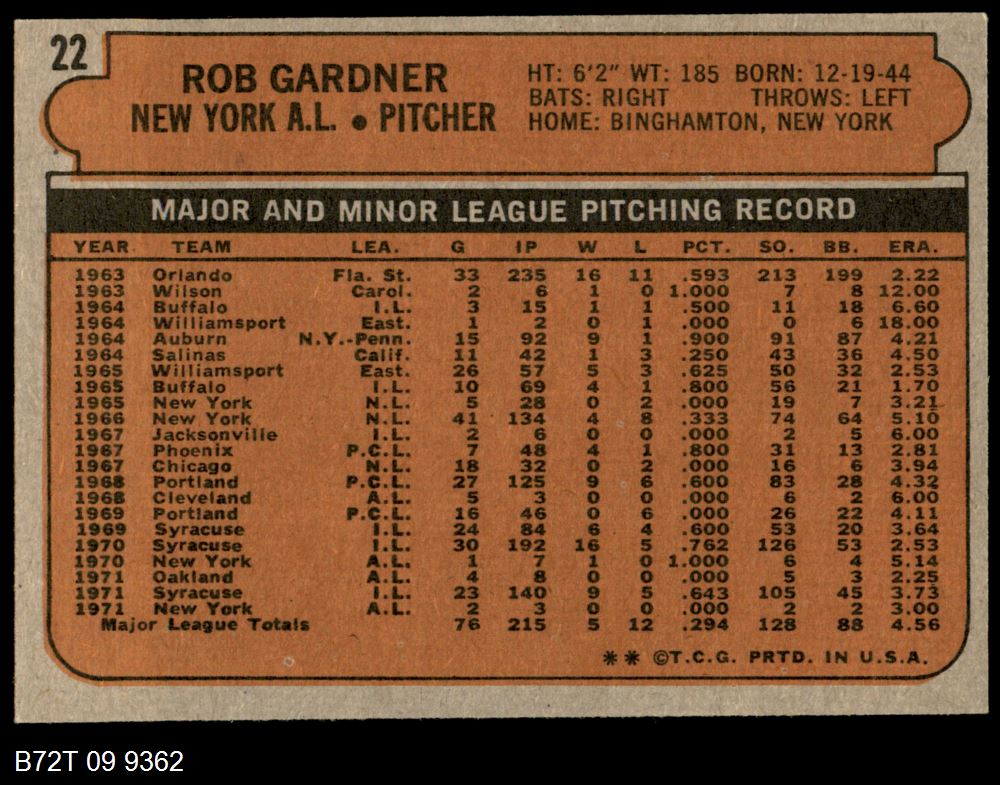 | 1972 Topps #22 Rob Gardner | 7 - NM | Front | Back |