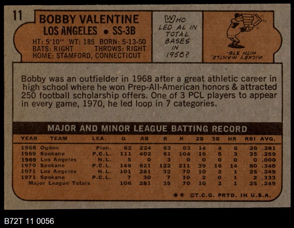 | 1972 Topps #11 Bobby Valentine | 7 - NM | Front | Back |