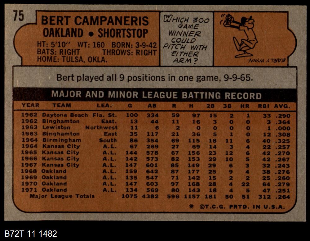 | 1972 Topps #75 Bert Campaneris | 7 - NM | Front | Back |