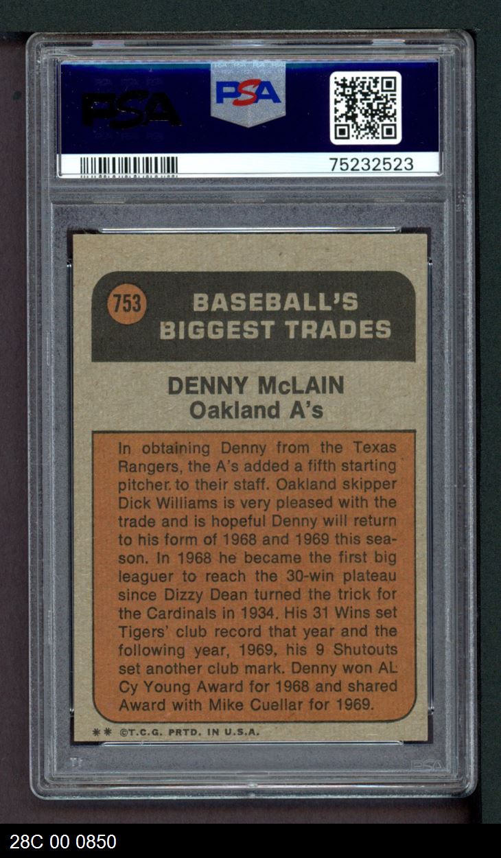 | 1972 Topps #753 - Denny McLain Traded | PSA 8 - NM/MT | Front | Back |