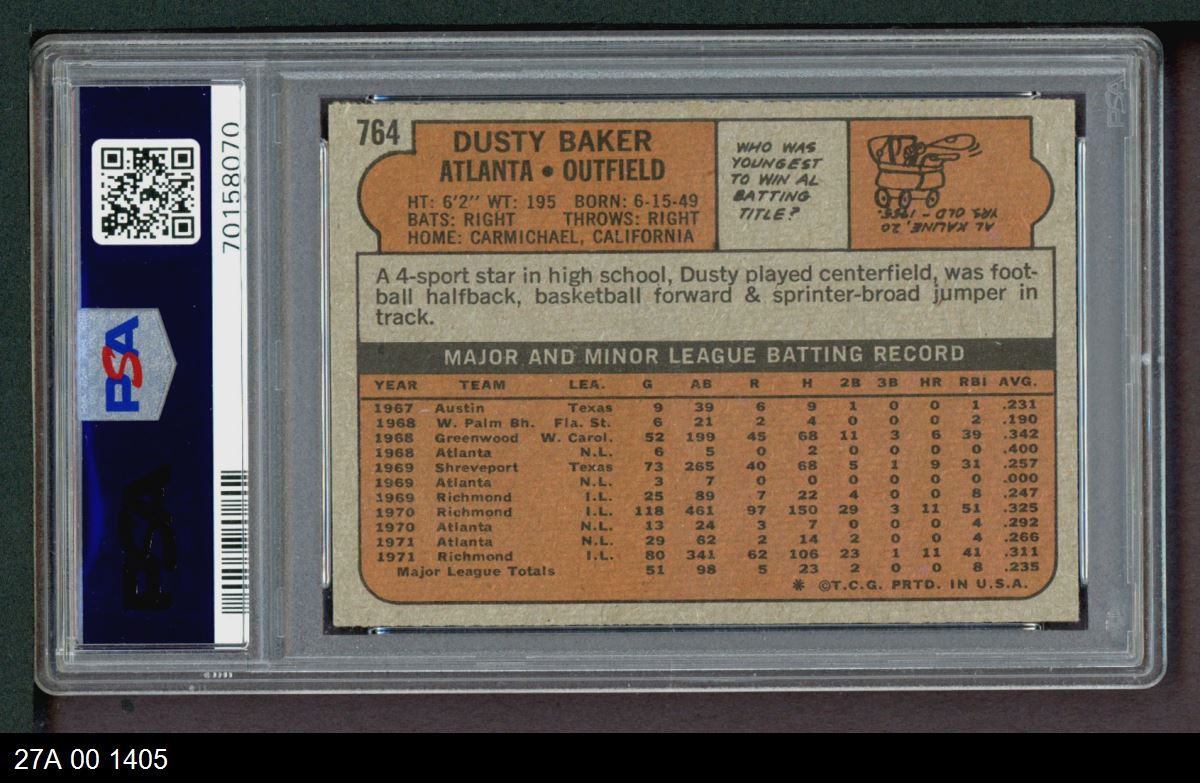 | 1972 Topps #764 Dusty Baker | PSA 8 - NM/MT | Front | Back |