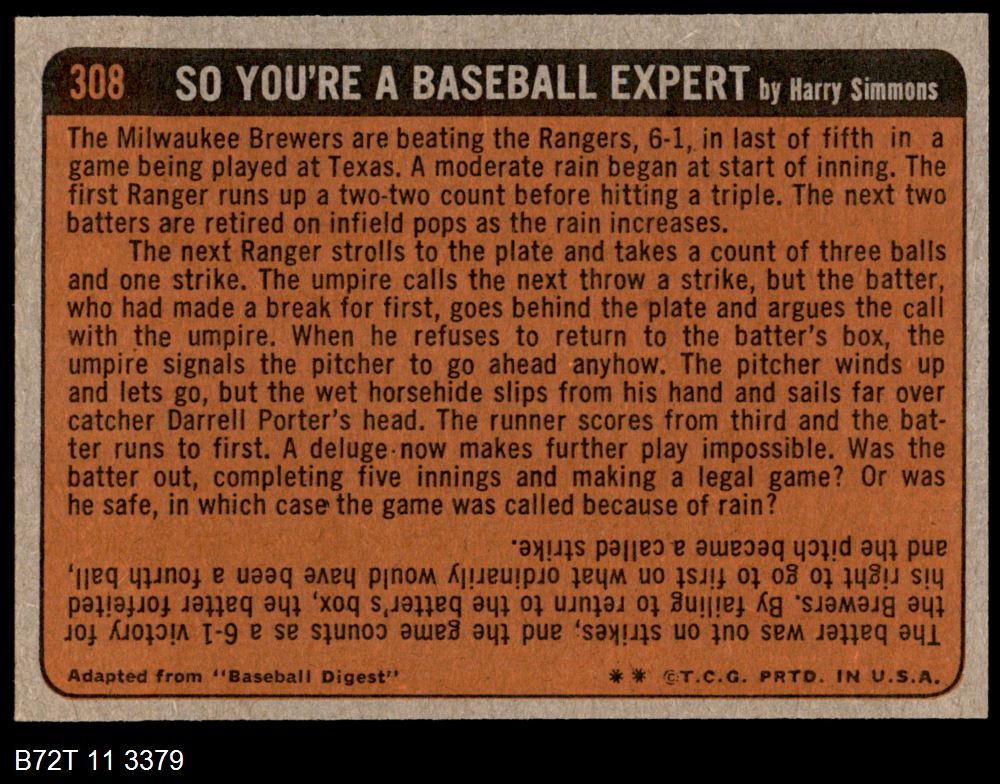 | 1972 Topps #34 - Billy Martin In Action | 6.5 - EX/MT+ | Front | Back |