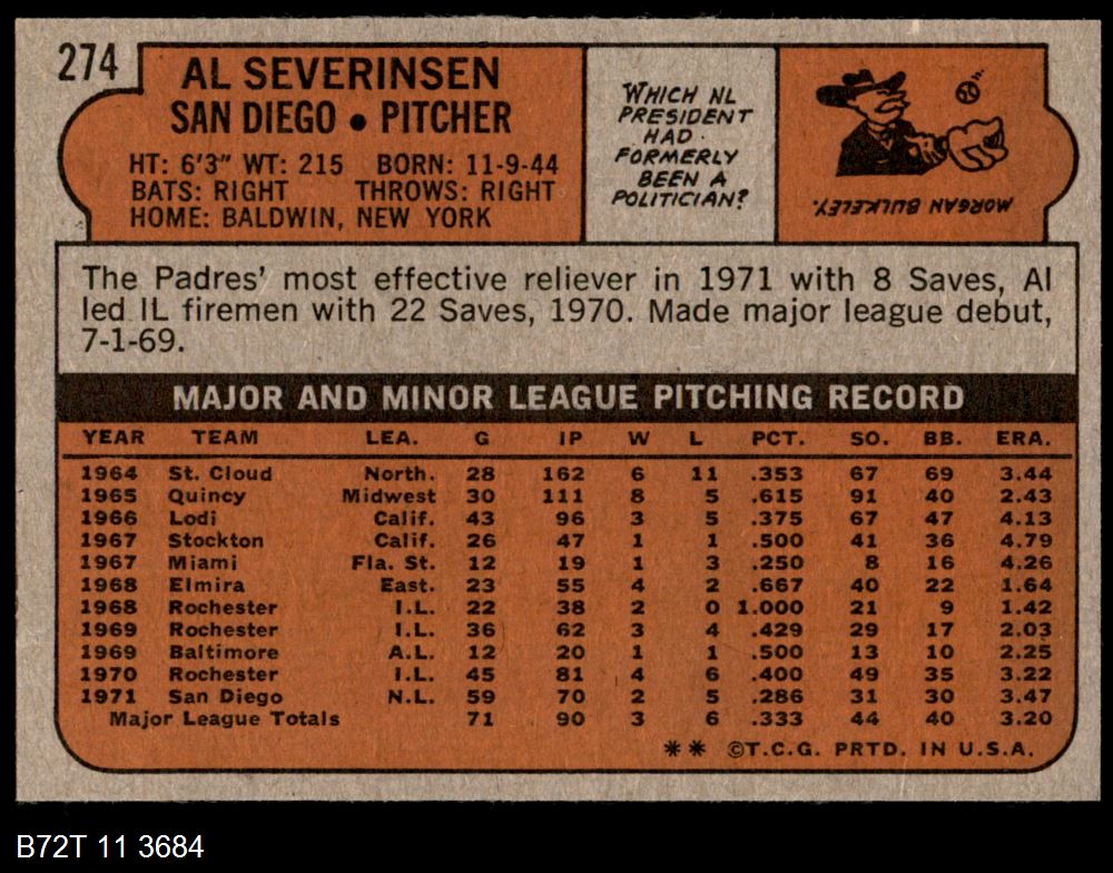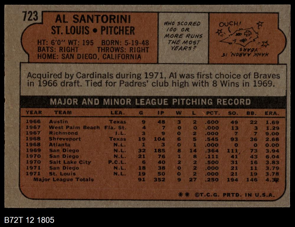 | 1972 Topps #723 Al Santorini | 7 - NM | Front | Back |